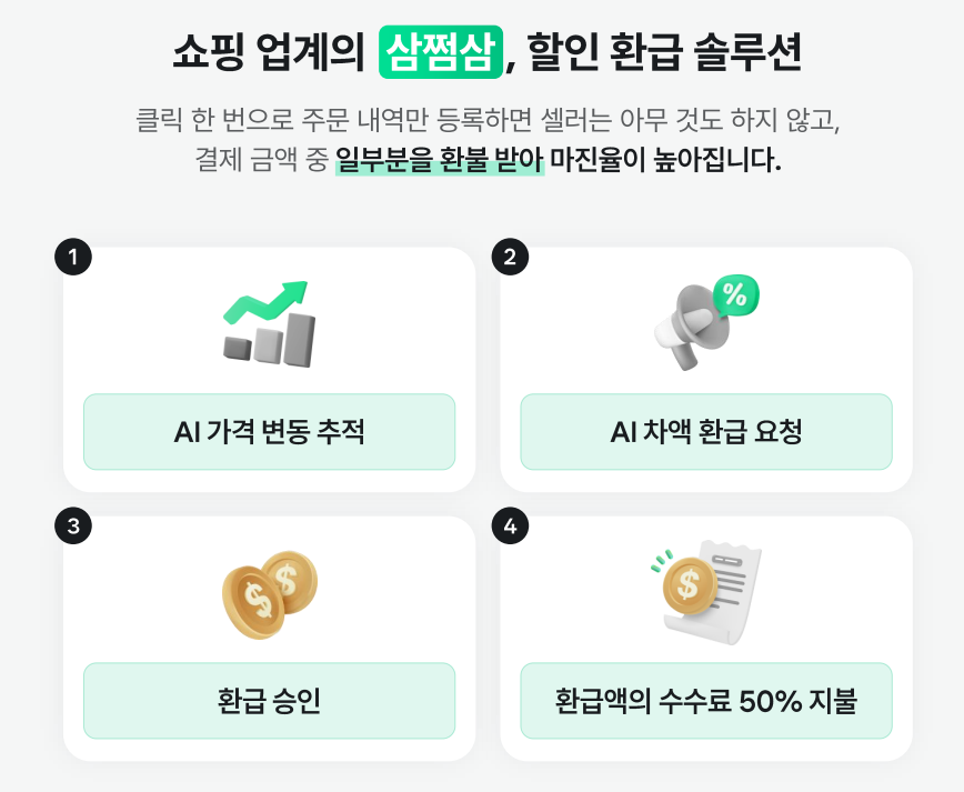 대학 재학 시절부터 사업가의 꿈을 키워온 박신욱 대표는 직접 셀러 활동을 하며 과중한 반복 노동을 경험했다. 이커머스 플랫폼의 다이나믹 프라이싱 정책으로 실시간 가격이 변동하는데, 셀러들이 이를 일일이 추적하고 환급받는 과정이 너무 복잡하고 번거롭다는 문제를 발견했다. 박 대표는 "환급 과정에서 발생하는 실거래 데이터를 AI 학습 기반으로 전환해, 장기적으로는 AI 셀러 구현을 목표로 하고 있다"며 창업의 계기를 밝혔다.
